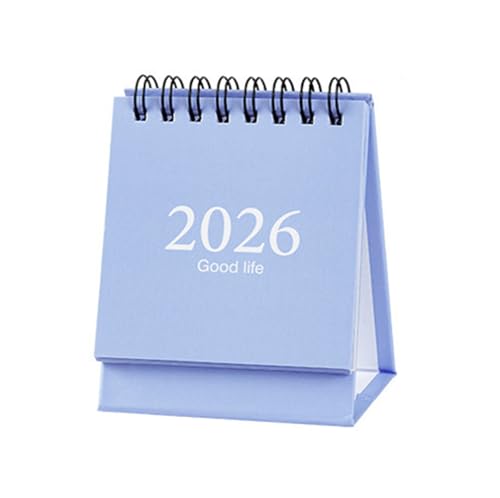 YFFSFDCの卓上ミニカレンダー2026年モデル。無地デザインでおしゃれ、持ち運びに便利。家庭用や会社用に最適。新年やクリスマスのギフトにも。色はブルー。