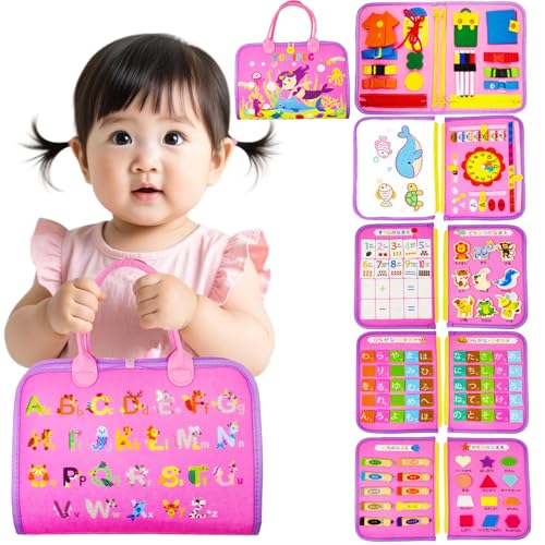 モンテッソーリのビジーボードは、幼児向けのお絵描きペン付きで、ひらがな、カタカナ、英語アルファベットを学べる知育玩具です。指先の訓練や算数、時計認知、色、形、数字認識を楽しみながら練習。プレゼントに最適!