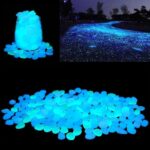 光る小石200個セット。屋外装飾に最適な青い光る岩で、庭や芝生、水族館の装飾にぴったり。歩道のアクセントにも活躍します。