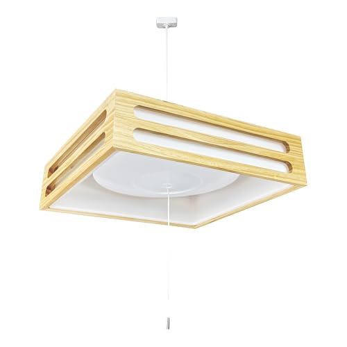 天然木飾り枠の和風LEDペンダントライト。6~8畳用、消費電力27Wで明るさは3000lmの昼白色。プルスイッチで3段階切替可能、引掛けシーリングに対応。和の雰囲気を楽しむ照明です。