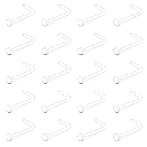Briana Williams クリアノーズスタッドリング L字型リテーナー フレキシブルフラットトッププラスチックピアス 18G 20G 仕事学校用 見えない 20個, アクリル、プラスチック、金属。の高価買取ITEM