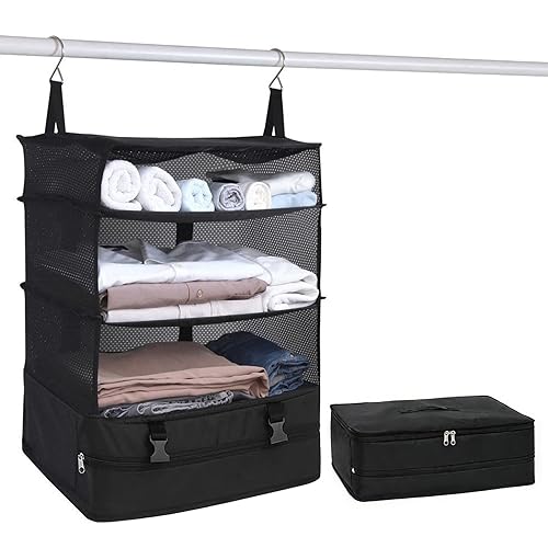Iyovgooトラベルポーチは、吊り下げ式で便利な圧縮袋。4段の大容量設計で、省スペースを実現。取り外し可能で、旅行時に役立ちます。カラーはブラックです。