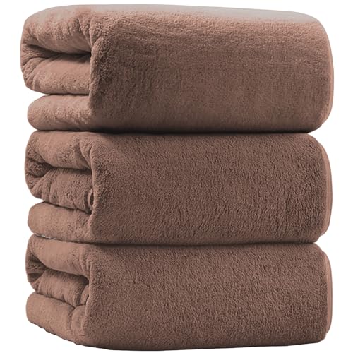 バスタオル [tkone 1色3枚セット 70*140cm] ふわふわ ホテル仕様 大判 瞬間吸水 吸水速乾 ホテル仕様 柔らか肌触り エステ 業務用 サロン お風呂上がり耐久性 バス用品(3枚組/140*70cm バスタオル,ブラウン)