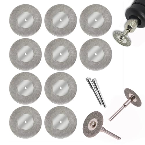 YJRUNFUのダイヤモンドカッターは、回転式の電動のこぎりや彫刻工具に最適。小径2.35mm軸×2本、3mm軸×2本、直径22mmのディスク10枚入りで、精密な研磨作業が可能です。