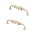 モダンデザインの白い取っ手2個セット。穴間距離は96-128mmで、電気めっき表面処理が施されています。キャビネットやタンスに適したセラミック製のノブです。