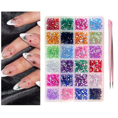 EKINDネイルアートキットには、ラインストーン、ツイーザー、クリスタルジェムが含まれ、ネイルデザインやDIYクラフト、デコレーションに最適な24グリッドのカラーダイヤモンドが揃っています。
