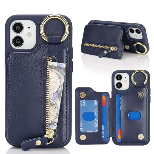 Havaya iPhone 12 mini ケースはカード収納が可能で、米軍MIL規格に準拠した耐衝撃性能を持ちます。リング付きでキーホルダーやキーリングとしても使用でき、スタンド機能やフェイクレザーのデザインが魅力のブルーケースです。