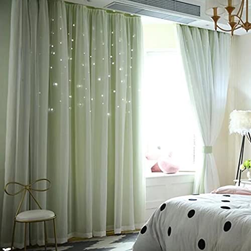 遮光カーテン 姫系 可愛い おしゃれ グラデーション レースカーテン 一体型 二重カーテン 星柄 透かし彫り 1.5倍ヒダ アジャスターフック付き 厚地 遮熱 断熱 インテリア 女の子 子供部屋 窓 小窓 腰窓 掃き出し窓 グリーン【幅60cm*丈180cm*1枚 片開き】 YKFNの製品情報