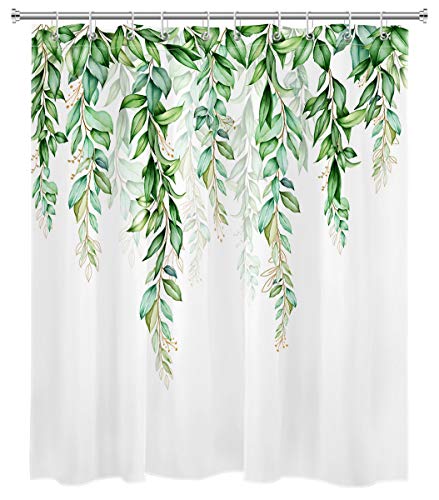 LB春の植物レトロシャワーカーテンは、緑色のつるの葉デザイン。防水・防カビ加工でお手入れ簡単。目隠しや間仕切り、遮光効果あり。サイズ150x180cm、リング付属。