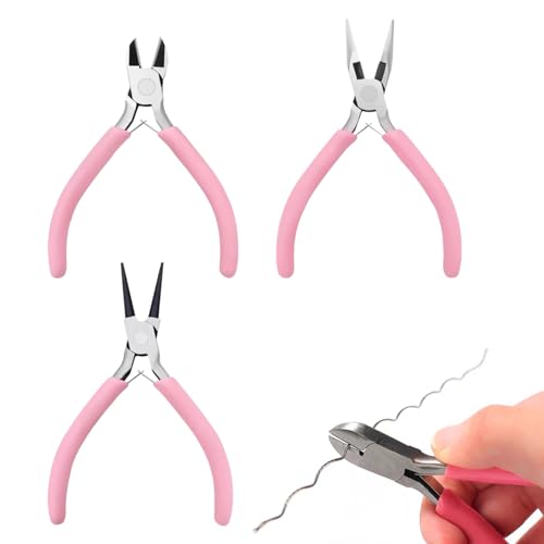 ZHEJIA手芸ペンチは、平やっとこ、ニッパー、丸ペンチの3点セット。軽量・小型で多機能、防水・耐久性に優れたDIYアクセサリー製作に最適な精密手作り工具。ピンク色で可愛いデザイン。