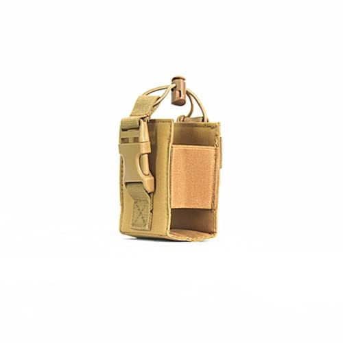 YUELIJINHYNの無線機バッグは、トランシーバーを収納できる戦術的なデザインで、molle対応。マガジンや小物も収納可能なブラウンのポーチです。