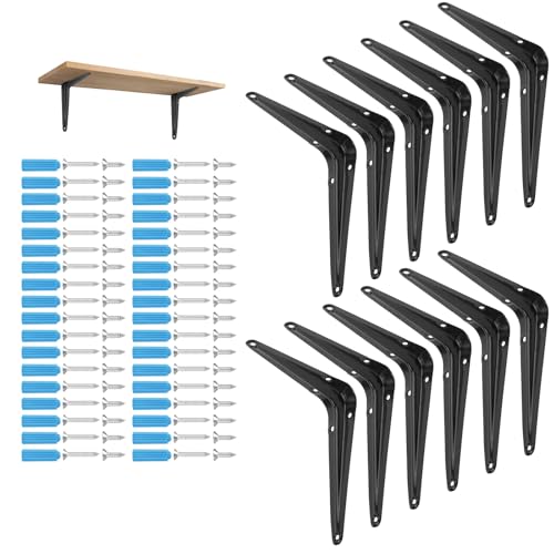 COCIVIVRE 棚受け金具 黒 250mm×200mm×42mm 12本セット 棚受けブラケット l字金具 鉄製 ネジ付き 壁掛け吊り棚・金具棚うけ・キッチン・部屋・オフィス対応