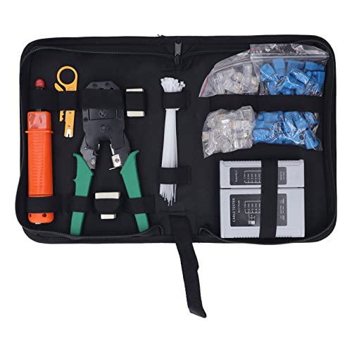 ケーブルプライヤー、ワイヤーストリッパー、CAT5/CAT5E/CAT6イーサネットケーブルテスターを含むネットワーク修理ツールキット。ストレージバッグ付きで持ち運び便利。
