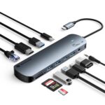 Yottamaster USB Cハブは11-IN-1ポートで、超高速10Gbpsデータ転送、4K@60Hz HDMI出力、100W PD急速充電対応。ギガビットLANやSD/MicroSDカードリーダーも搭載。Windows/Macに対応。