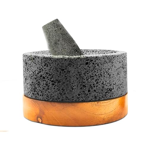 YO PIDO Molcajete 8インチ 木製スタンド付き;スパイスモルタル;火山石製;メキシコで手作りされたモルカヘテ;ワカモレとサルサメーカー;すりこぎ石付きの高価買取