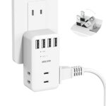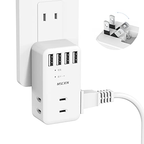 Mscienの電源タップは、3個のAC口と4個のUSBポートを備え、雷ガード機能も搭載。直挿しタイプで、効率的に電力を分岐できるマルチタップです。
