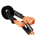 アルミ合金製のオフロード用リカバリーリングとウインチロープ。軽量で強度に優れ、耐久性も高い。ノットバックルと滑車が付属しており、取り扱いも簡単。カラーはブラックとオレンジの組み合わせ。