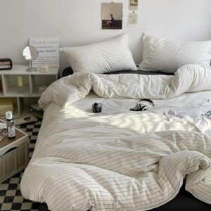 Forhomelife 布団カバー シングル 3点セット 布団カバー シーツ フリル チェック柄 掛け布団カバー ベッドカバー 枕カバー ボックスシーツ ベッドシーツ 寝具カバーセット ピーチスキン加工 洗い替え 速乾 格子縞 (ベージュ・シングル3点セット)