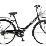 Speedworldの26インチ折りたたみママチャリ。シマノ6段変速、カゴ付き、鍵付き。ダイナモLEDライト、荷台付きで通勤や通学に最適。オールランダハンドル、片足スタンドにより使いやすさ向上。