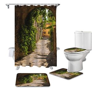 シャワーカーテン4点セットです。滑り止めカーペット、トイレカバーマット、U字型クッションが含まれています。耐久性に優れ、簡単に取り付け可能。サイズは150*180cmで、お手入れも簡単です。