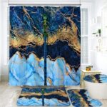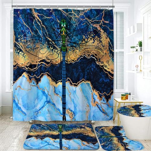 シャワーカーテン4点セット、スタイル滑り止めカーペット、トイレカバーカバー、U字型クッション、耐久性あり。150*180サイズ、取付簡単でお手入れも簡単なバスルームアイテムです。
