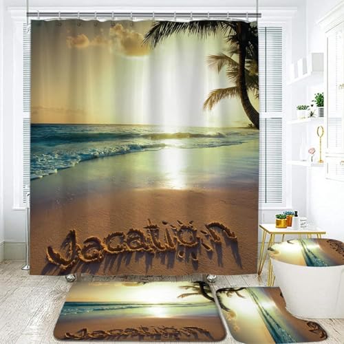 猫デザインの防水シャワーカーテン4点セット。便座クッション、滑り止めカーペット、U字型輪郭クッションが含まれ、間仕切りや浴室装飾に最適。防カビ、速乾性で北欧風スタイル。サイズA.150*180cm。