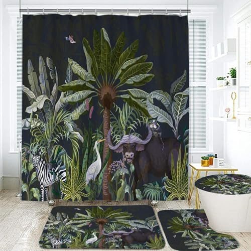 シャワーカーテン4点セットには、滑り止めカーペット、トイレカバー、U字型クッション、バスルームカーテンが含まれています。耐久性が高く、取付け&お手入れが簡単。サイズは150×180cm。