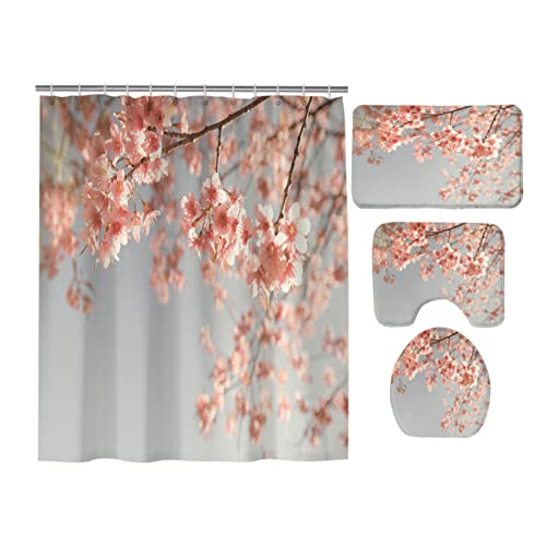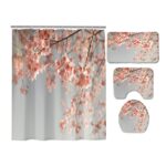 シャワーカーテン4点セットA。サイズ150*180cm。滑り止めカーペット、トイレカバー、U字型クッション、取り付け簡単でお手入れも楽々。耐久性に優れたバスルーム用デザイン。