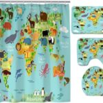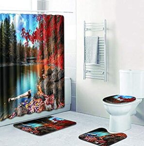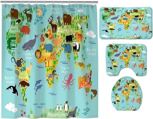 シャワーカーテン4点セット。滑り止めカーペット、トイレカバー、U字型クッション付き。サイズ150*180cmで耐久性があり、簡単に取り付け・お手入れできます。