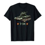 ソビエト連邦の象徴的T34中戦車のデザインTシャツ。素材は柔らかいコットン100%で、快適な着心地。ユニセックスサイズ展開で、戦車ファンや歴史愛好者に最適なアイテムです。