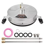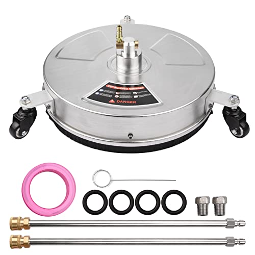 Duangu表面クリーナーは、38cmの幅で15インチの高圧洗浄機用です。ステンレス鋼ハウジング、4000PSI対応で、3ホイール、2ノズル、2エクステンションワンド、1/4インチクイックコネクタ付き。