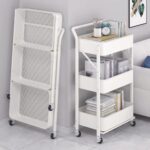 組立不要の3段折り畳み式キッチンワゴン。幅46×奥行29.5×高さ87cmで、スチール製のバスケットラック。キャスター付きで移動も簡単。隙間収納や収納カートとして活躍します。