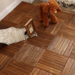 30×30×2.2cmの天然木製ウッドデッキタイル150枚セット。炭化防腐処理済みで、屋外でも安心。簡単にジョイント可能で、庭やベランダに最適なおしゃれな床材です。