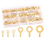 150個セットの丸型端子セットは、M3からM10のサイズが揃い、真鍮製で耐久性抜群。自動車やバイクの修理・加工に最適な圧着用コネクタキットです。