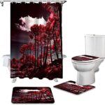 防水4ピースシャワーカーテンセット。フォレストマングローブデザイン。180x180cmサイズ。バスルームのシャワーカーテン、カーペット、トイレカバー、クッション入り。