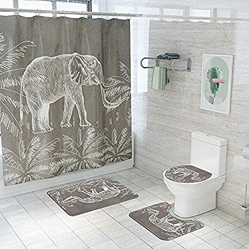 アフリカゾウデザインのシャワーカーテン、180×180cm。滑り止めカーペットと便座クッション付き。浴室の装飾に最適です。