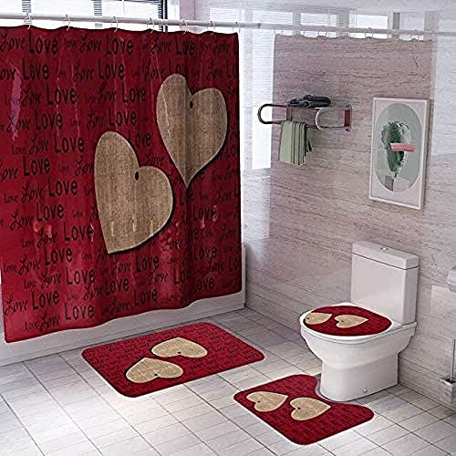 バレンタインデーにぴったりな愛のパターンの浴室用シャワーカーテン。防水ポリエステル製で、180×180cmのサイズ。カーペットカバーやトイレカバー、赤いクッションカバー付きの家の装飾アイテム。