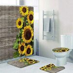 ひまわりバスルームシャワーカーテンセット 4 ピースセットひまわり提供シャワーカーテンクッションカーペットカーペット家の装飾 180 × 180 センチメートル 高価買取中