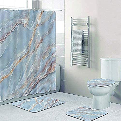 ブラックゴールド大理石デザインのバスルーム用シャワーカーテンと滑り止めカーペットのセット。サイズは180×180センチ。トイレアクセサリーとしても最適。