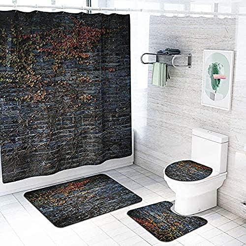 レンガ壁パターンの生地を使用したシャワーカーテンで、サイズは180×180センチ。滑り止めカーペットとトイレカバーがセットになっており、家の装飾に最適です。