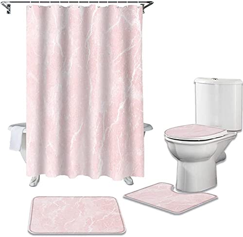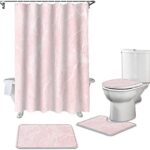 ピンクの大理石パターンが美しい防水シャワーカーテンセット。耐久性に優れ、バスルームを演出します。サイズは180×180 cm。カーペット、便座カバー、フロアマットが含まれています。