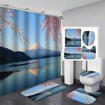 花柄シャワーカーテン4点セットは、360x180cmのサイズで、カーペットカバー、トイレカバー、バスマット、クッションカバーが含まれています。12フック付きで、バスルームを華やかに演出します。