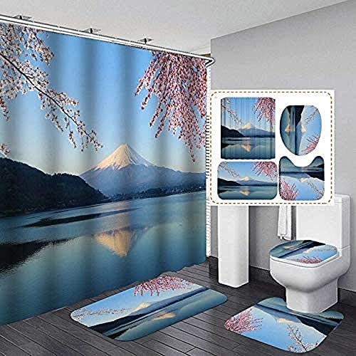 花柄シャワーカーテン 4点セット カーペットカバー トイレカバー バスマット クッションカバー バスルームカーテン 12フック付き 180X180cmの高価買取ITEM
