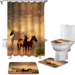 4ピースセットのマスタングアニマルプリントシャワーカーテンとバスタブ用カーペット、防水機能付き。便座クッションも含まれ、サイズは180×180センチメートルです。