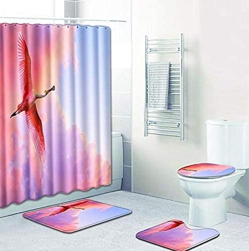 ピンク鳥のシャワーカーテン4点セットには、カーテン、フック、マット、ブラシが含まれています。優しい色合いがリラックス空間を演出。防水素材でお手入れも簡単。浴室にかわいらしいアクセントを加えます。