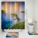 4ピース滝シャワーカーテンセット。美しいビューの3D印刷デザインで、家庭用バスルームに最適。トイレクッションカーペット付きで、サイズは180*180cmです。