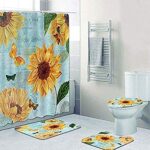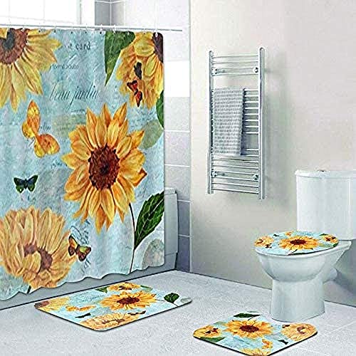 ひまわりバスルームシャワーカーテンセットは4ピースで、シャワーカーテン、クッション、カーペットが含まれています。サイズは180×180センチで、家の装飾に最適です。
