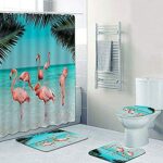 4ピースのピンクの鳥デザインのシャワーカーテンセットです。3D熱帯動物植物柄で、バスルームに華やかな雰囲気を演出。サイズは180×180センチメートル。カーテン、クッション、カーペット、トイレマットが含まれています。