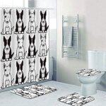 ブルドッグシャワーカーテンかわいい犬バスルームカーテンセットトイレクッションカーペットカーペットペット子犬ギフト 180 × 180 センチメートルの高価買取