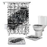 HGFHKLL ミュージックノート白黒スプラッシュシャワーカーテンカーペットカバートイレカバーバスマットクッションカバーバスルームカーテン家の装飾(4個/セット)の製品情報